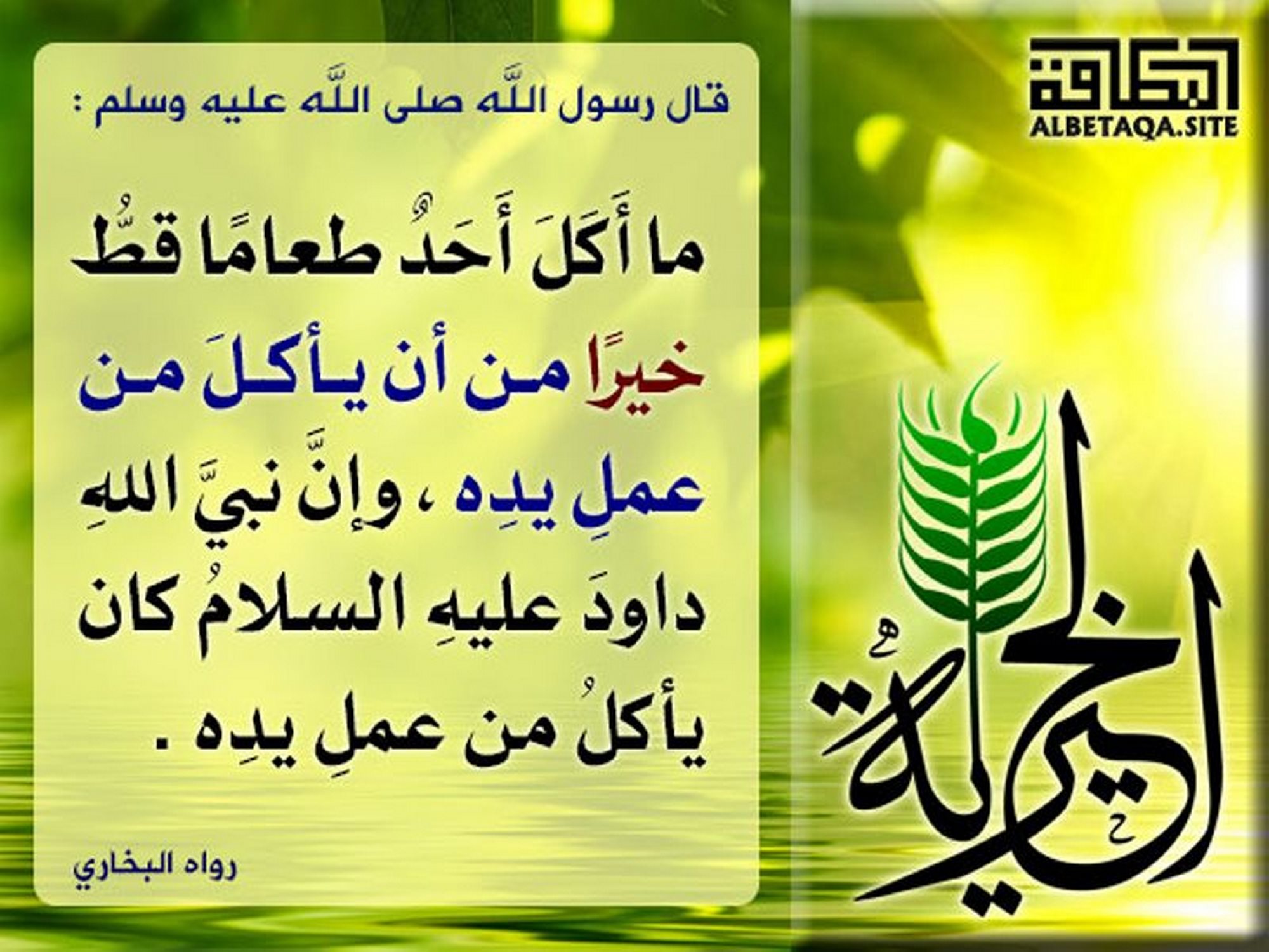 (ما أكل أحد طعاما قط، خيرا من أن يأكل من عمل يده، وإن نبي الله داود عليه السلام كان يأكل من عمل يده). رواه البخاري