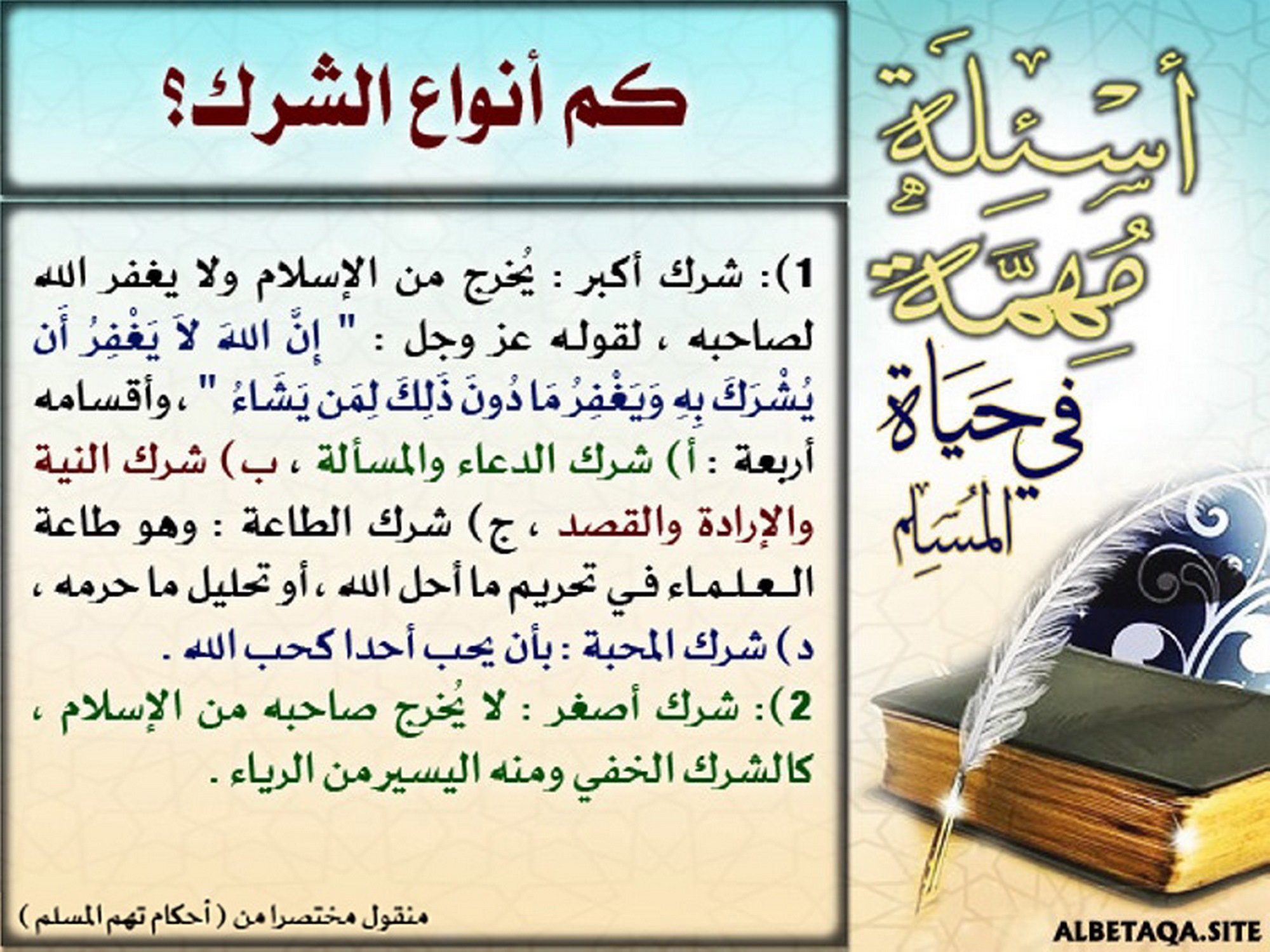أسئلة مهمة في حياة المسلم – كم أنواع الشرك؟