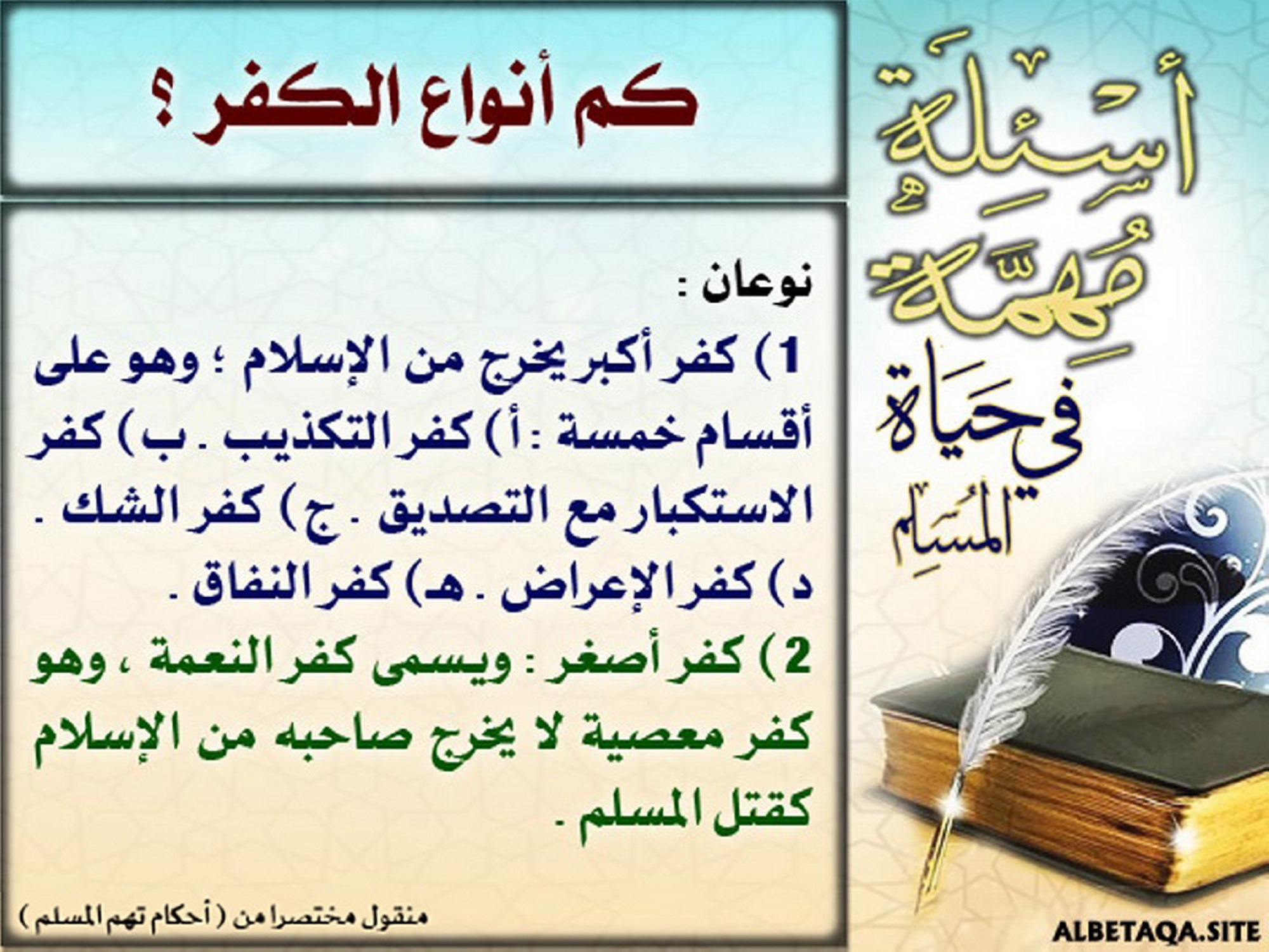 أسئلة مهمة في حياة المسلم – كم أنواع الكفر؟