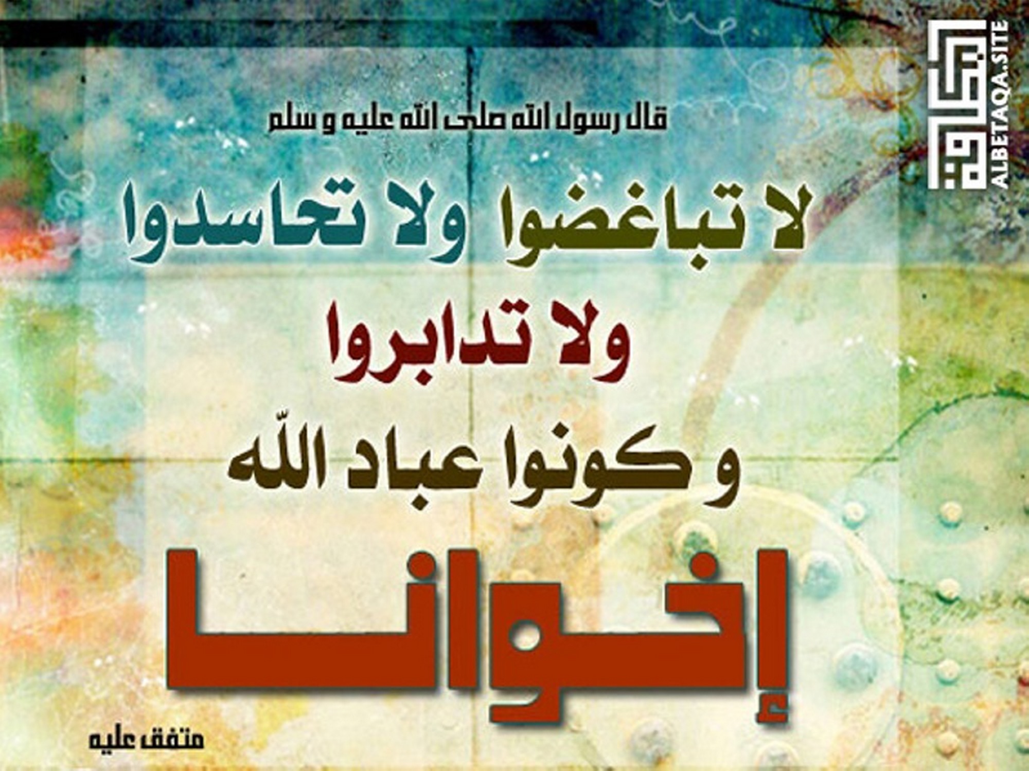 (لا تباغضوا ولا تحاسدوا ولا تدابروا وكونوا عباد الله إخوانا). متفق عليه