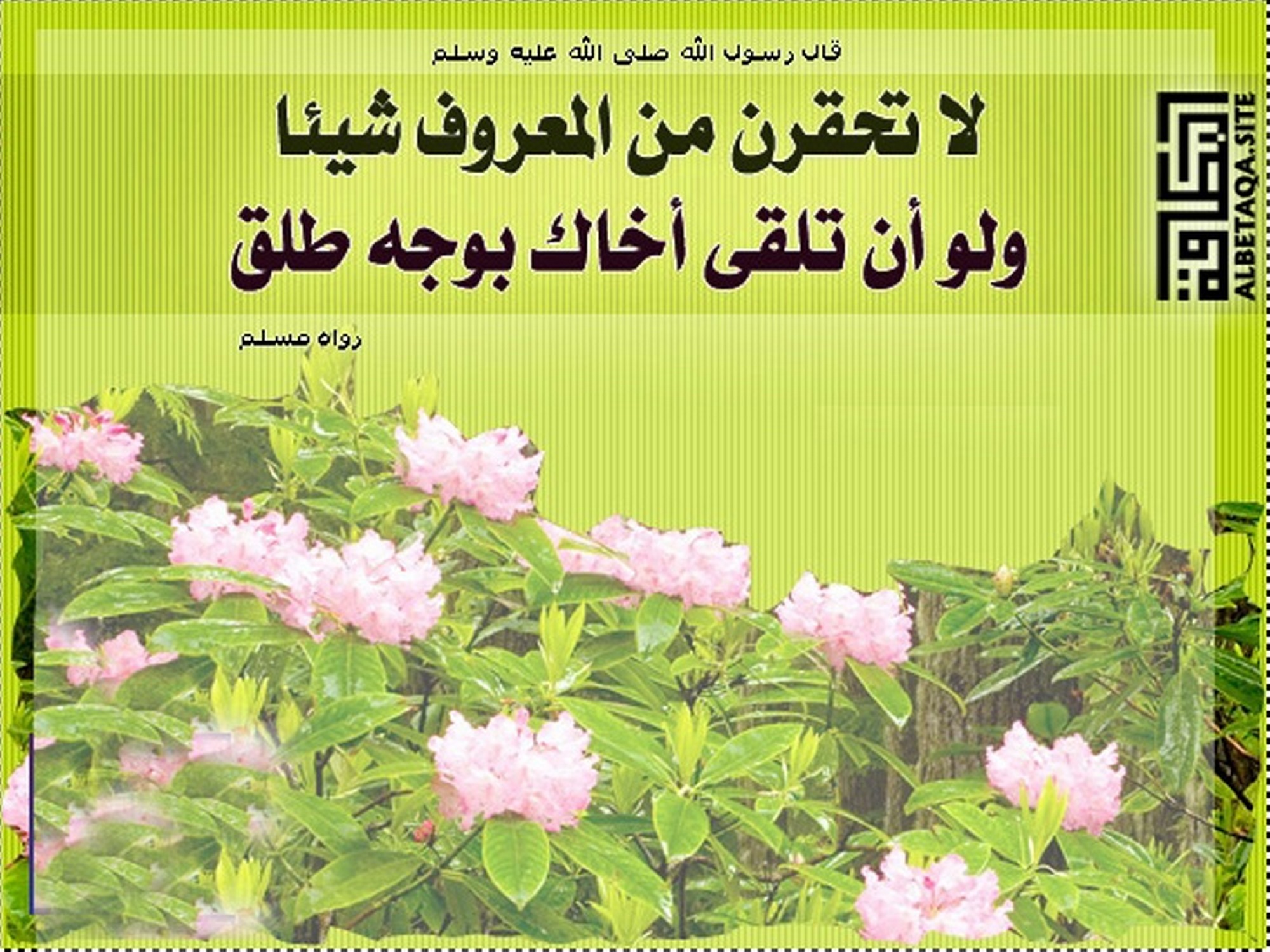 (لا تحقرن من المعروف شيئا ولو أن تلقى أخاك بوجه طلق). رواه مسلم