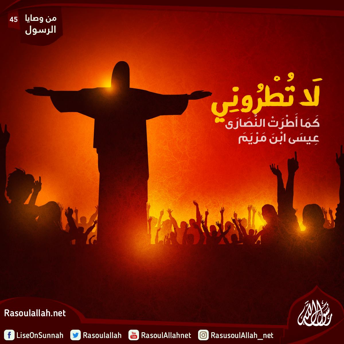 "لَا تُطْرُونِي كَمَا أَطْرَتْ النَّصَارَى عِيسَى ابْنَ مَرْيَمَ"