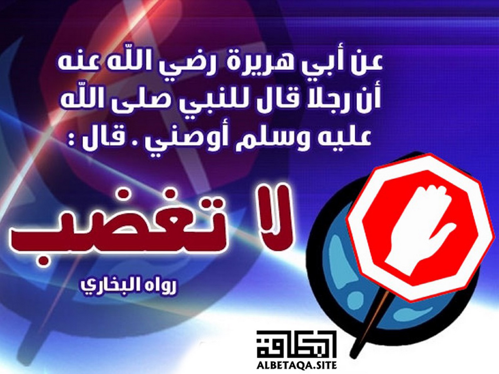 (أن رجلا قال للنبي صلى الله عليه وسلم أوصني قال: لا تغضب). رواه البخاري