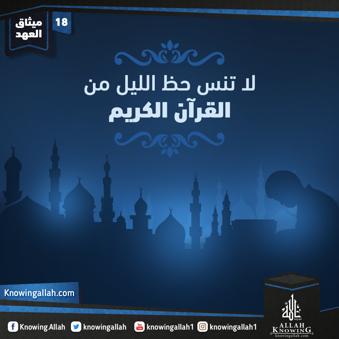فاجعل جزءاً من ورد القرآن صلاة بليل. وإن نشط سيرك فاجعله كله قياماً! ذلك خير. فقد قال رسول الله صلى الله عليه وسلم لعبد الله بن عباس: ("نعم الرجل عبدالله لو كان يصلي من الليل". قال سالم: فكان عبدالله، بعد ذلك، لا ينام من الليل إلا قليلاً). وذلك مسلك الربانيين. فانظر إلى هذا المشهد الجميل من قول الله تعالى في وصف المؤمنين من أهل الكتاب الذين ادركوا الإسلام فأسلموا: