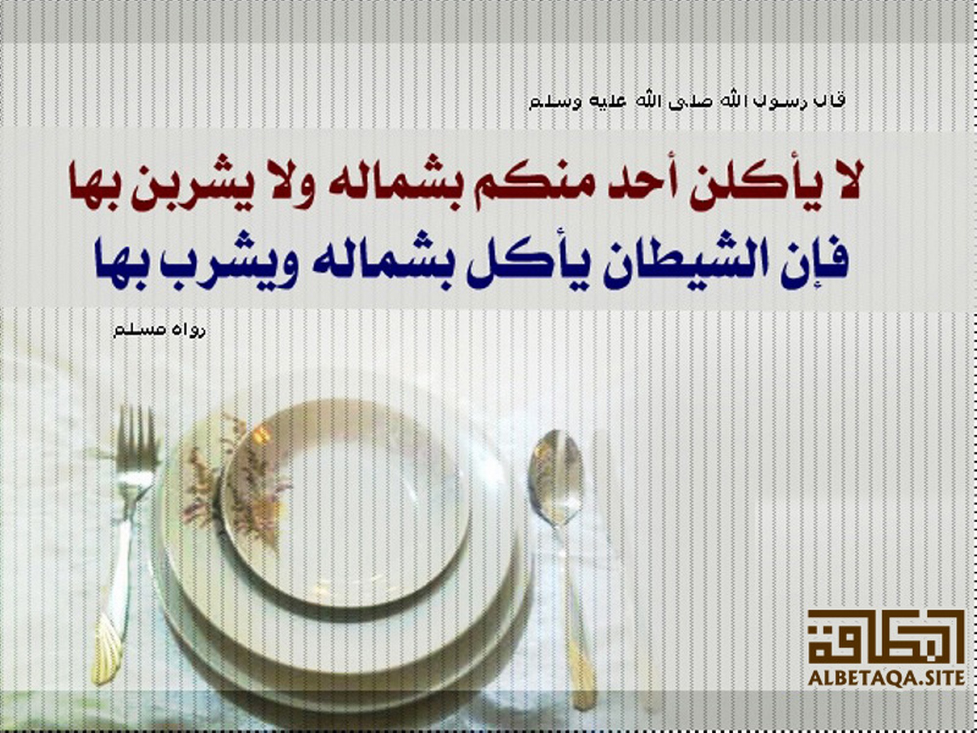(لا يأكلن أحد منكم بشماله ولا يشربن بها فإن الشيطان يأكل بشماله ويشرب بها). رواه مسلم