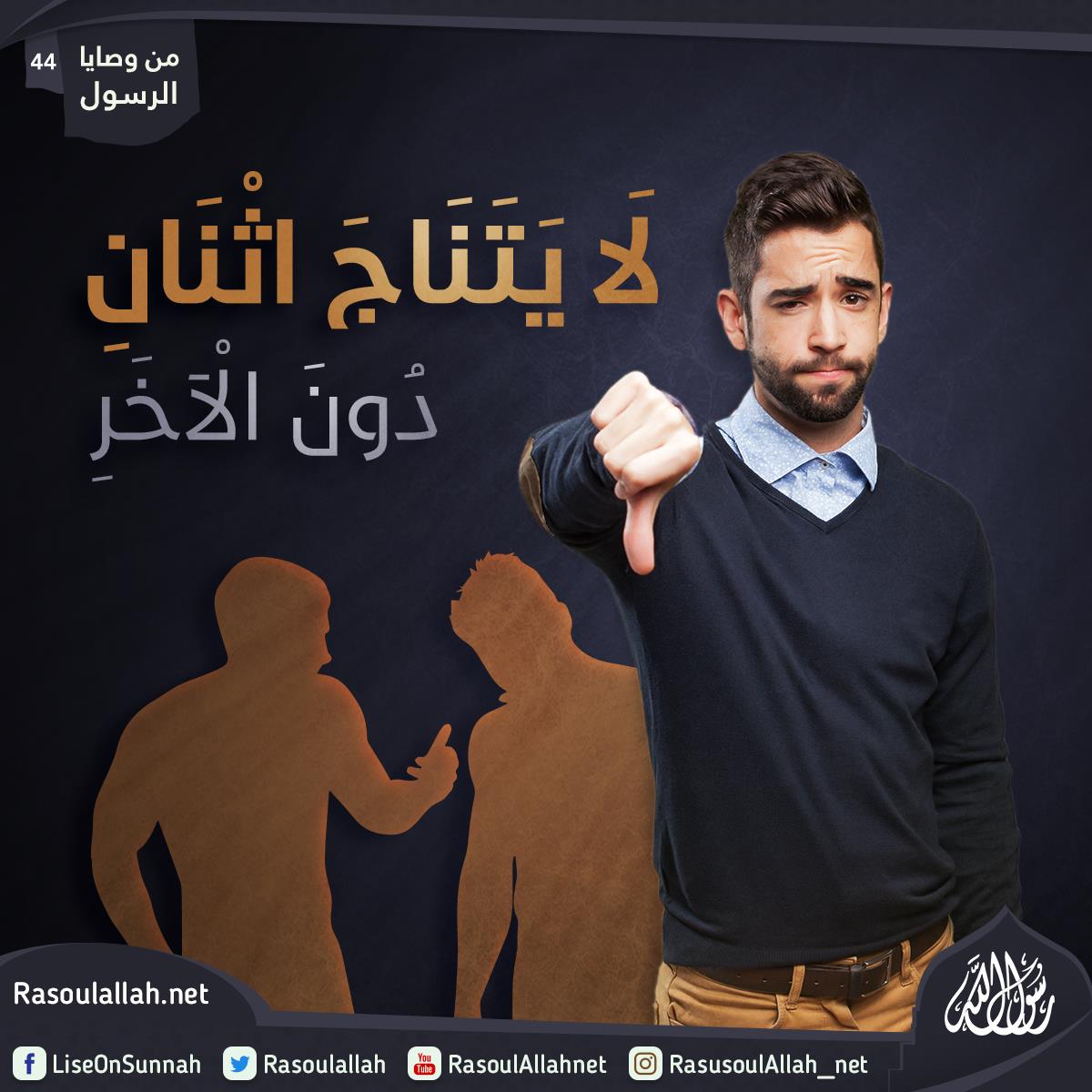 "إِذَا كُنْتُمْ ثَلَاثَةً فَلَا يَتَنَاجَ اثْنَانِ دُونَ الْآخَرِ"