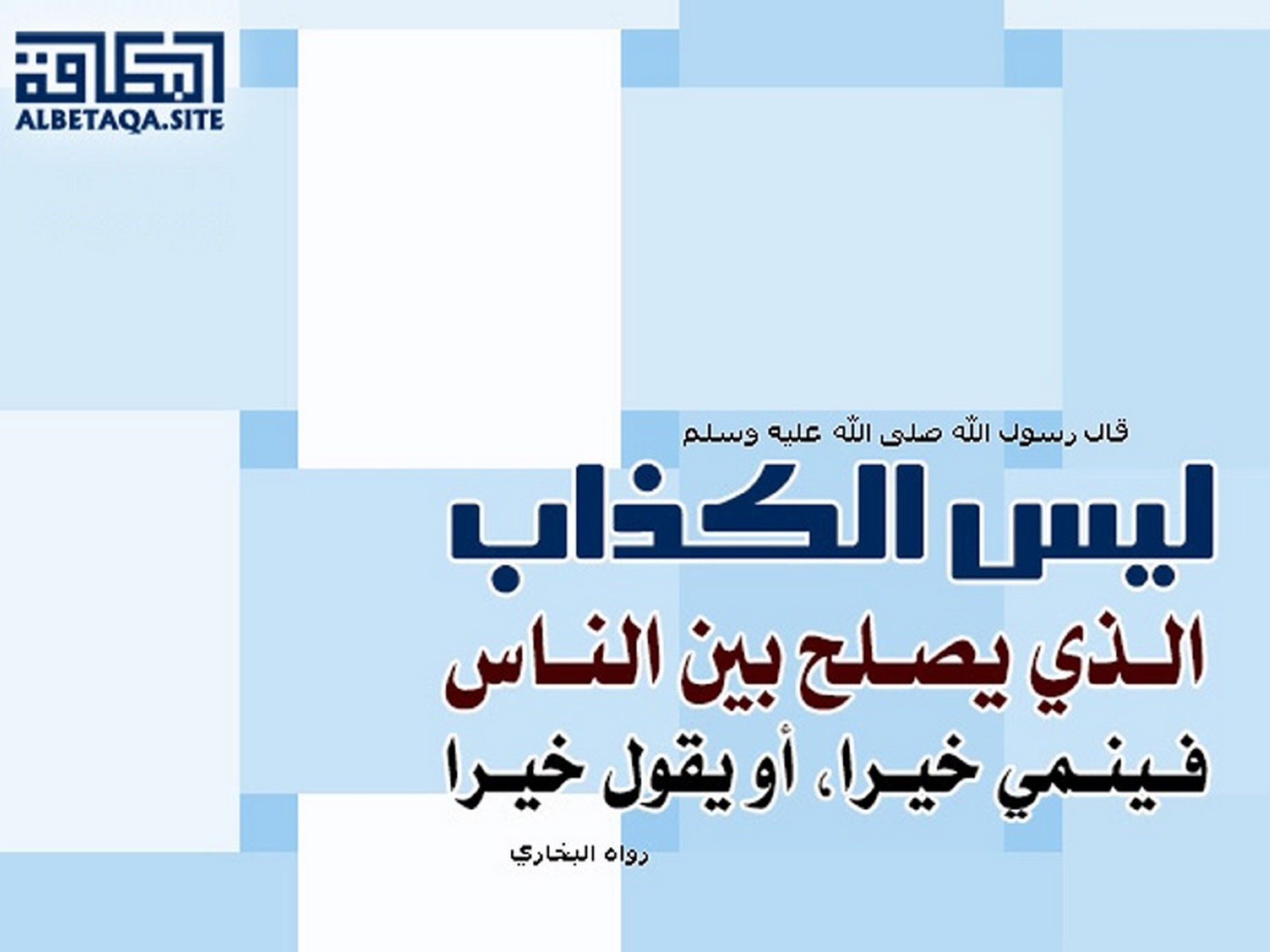 (ليس الكذاب الذي يصلح بين الناس فينمي خيرا أو يقول خيرا). رواه البخاري