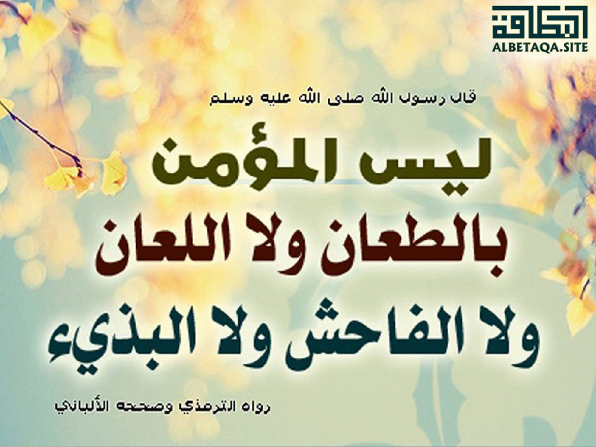 (ليس المؤمن بالطعان ولا اللعان ولا الفاحش ولا البذئ). رواه الترمذي وصححه الألباني