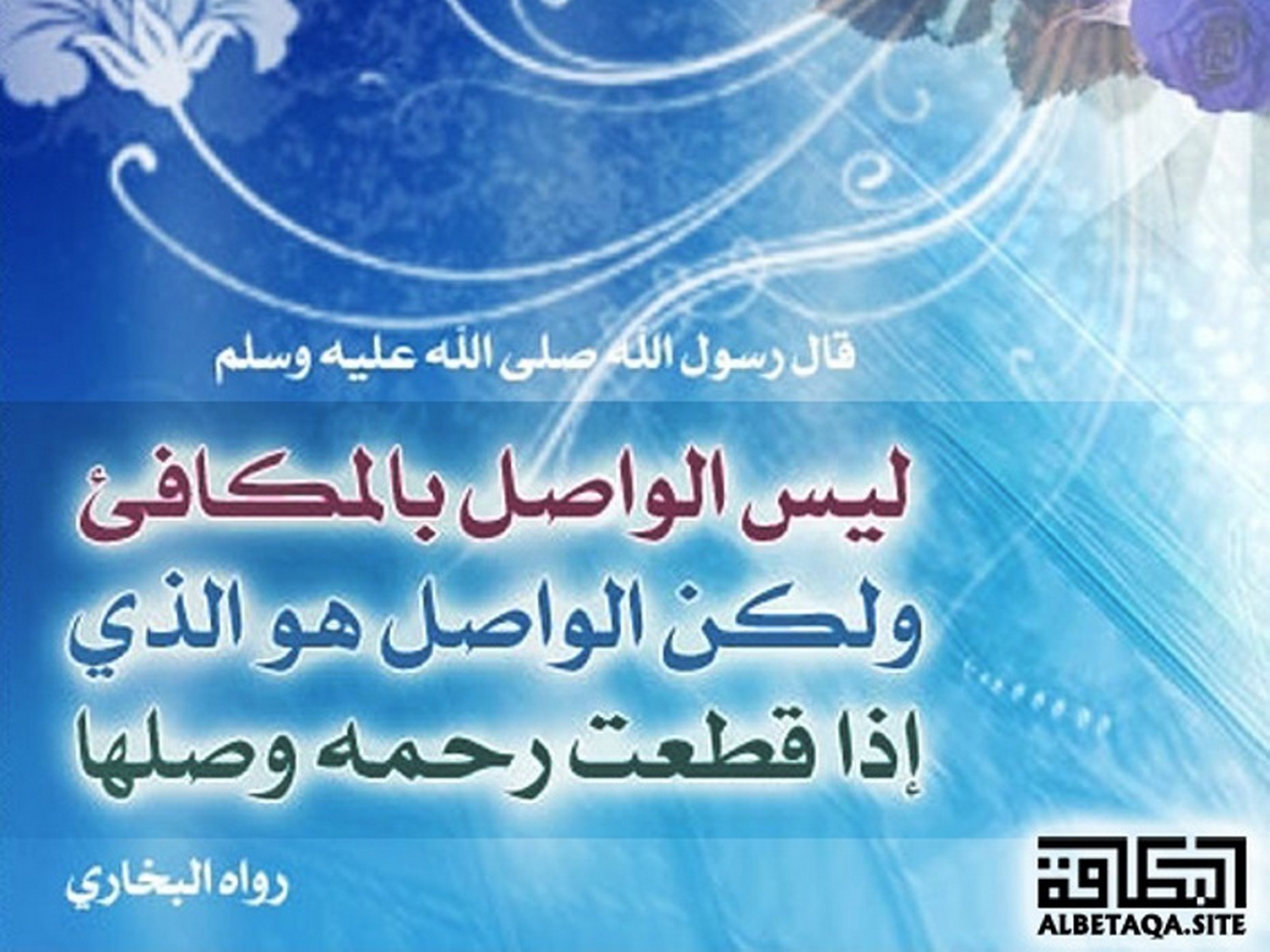 (ليس الواصل بالمكافئ ولكن الواصل هو الذي إذا قطعت رحمه وصلها). رواه البخاري