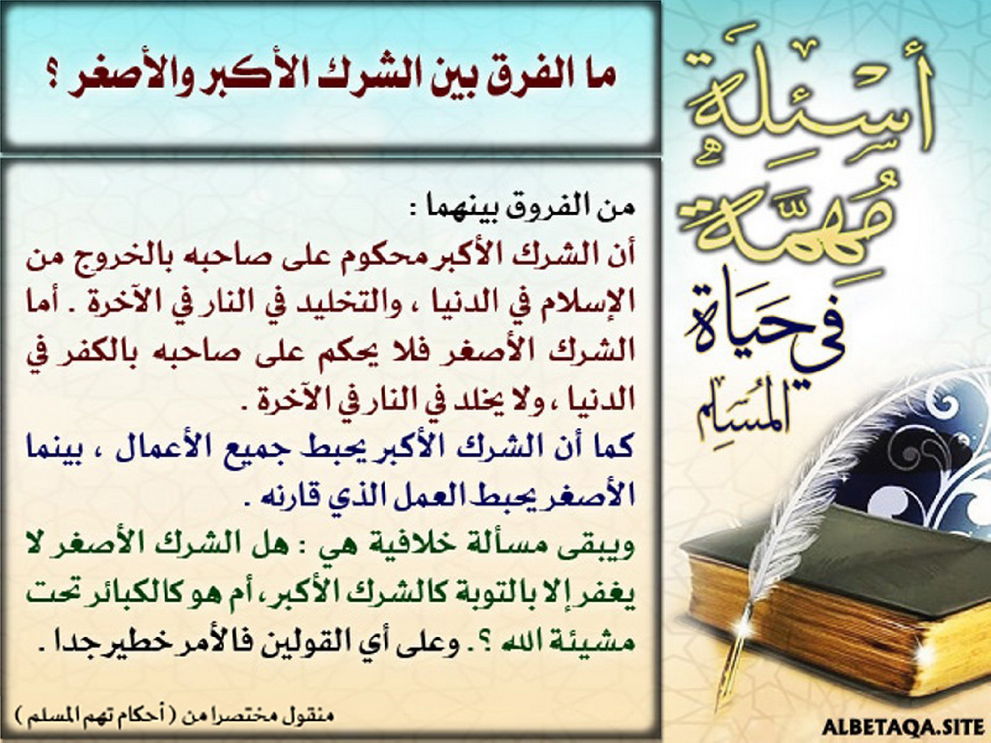 أسئلة مهمة في حياة المسلم – ما الفرق بين الشرك الأكبر والأصغر؟
