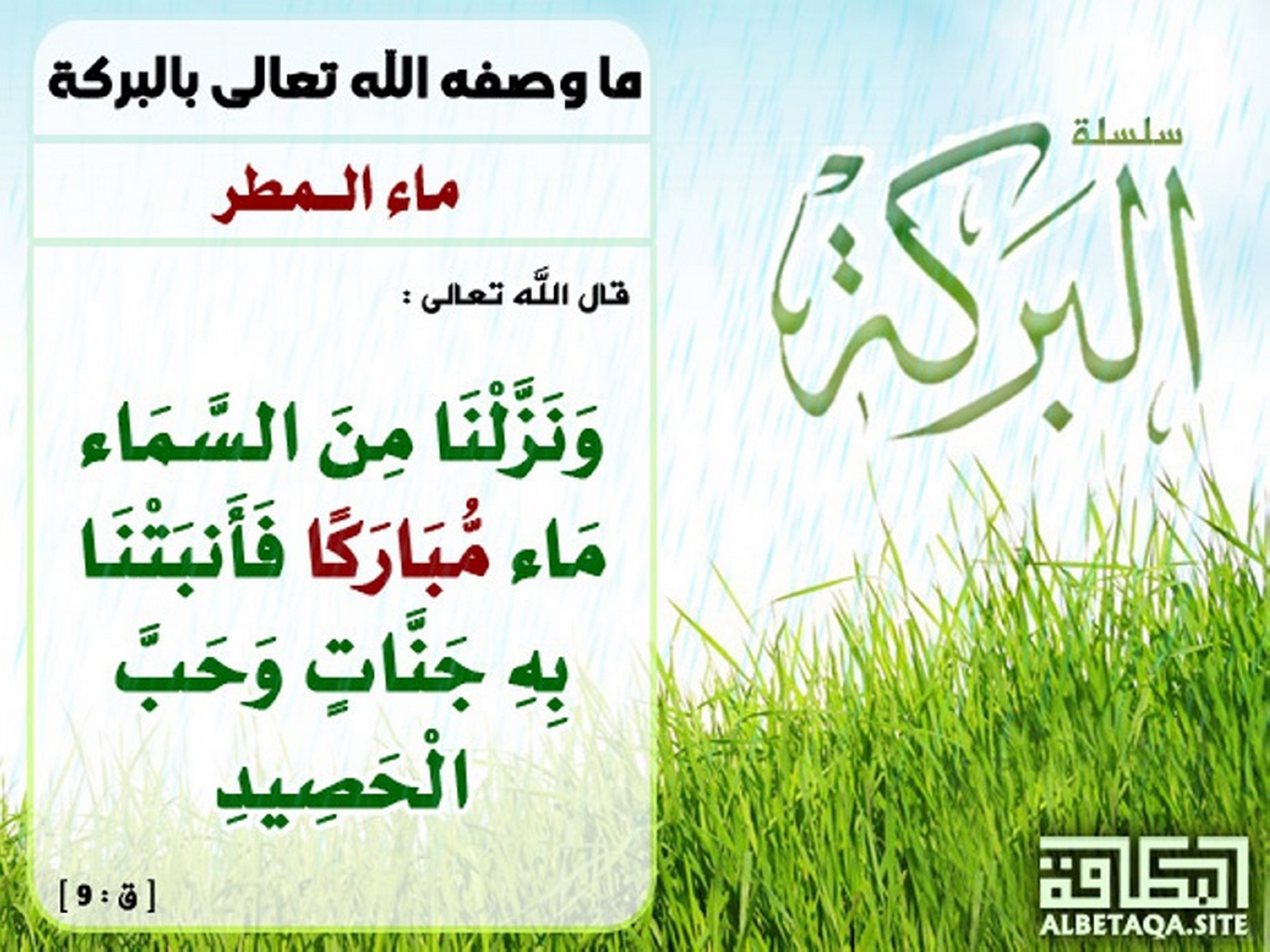 (ونزلنا من السماء ماء مباركا فأنبتنا به جنات وحب الحصيد). [ ق:9]