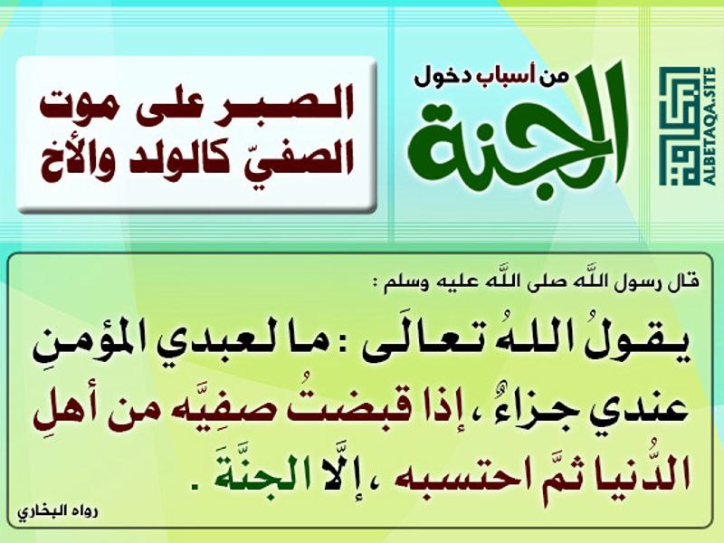 قال رسول الله صلى الله عليه وسلم (يقول الله تعالى: ما لعبدي المؤمن عندي من جزاء إذا قبضت صفيه وخليله من أهل الدنيا ثم احتسبه إلا الجنة).