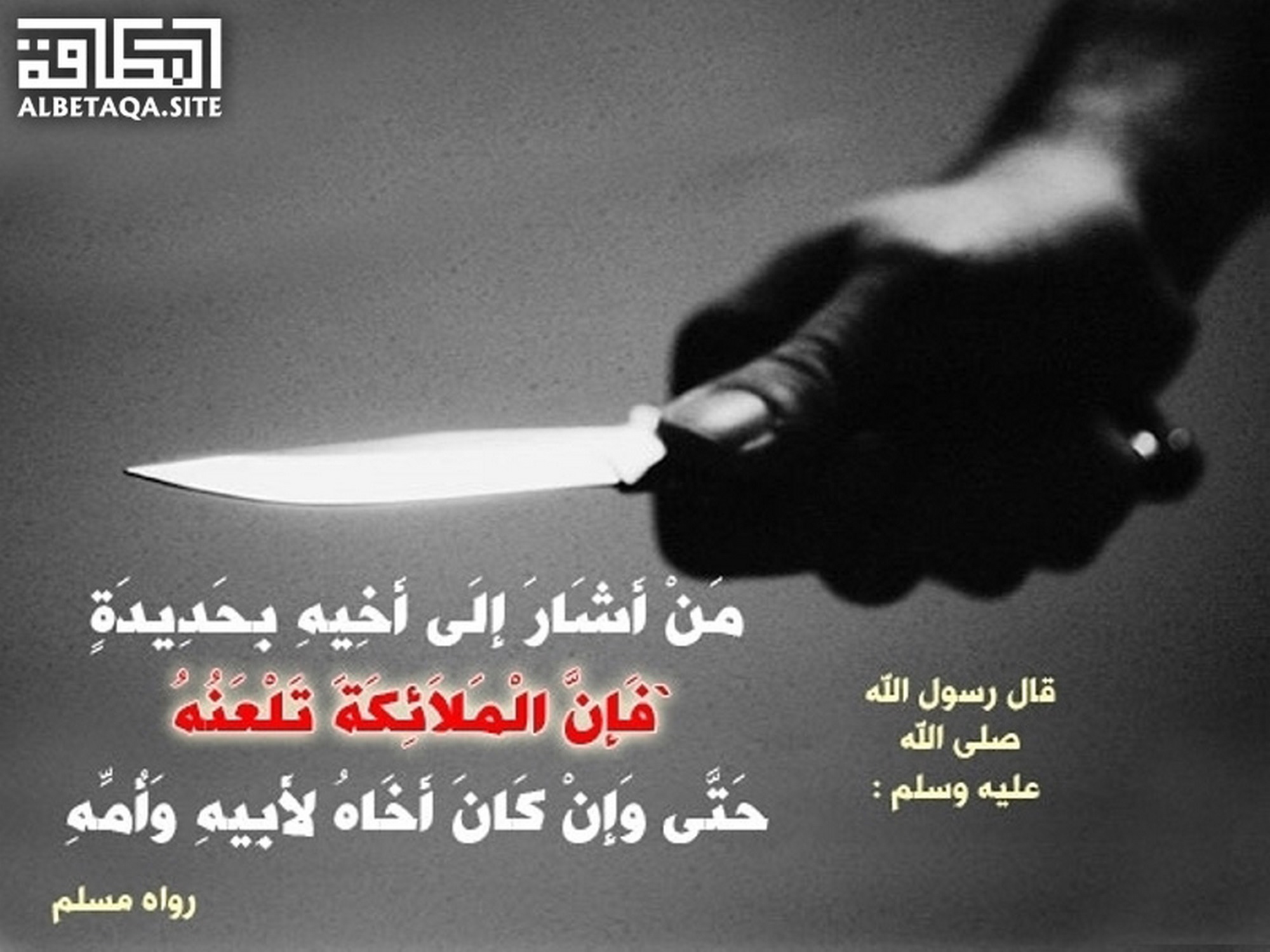 (من أشار إلى أخيه بحديدة فإن الملائكة تلعنه حتى وإن كان أخاه لأبيه وأمه). رواه مسلم