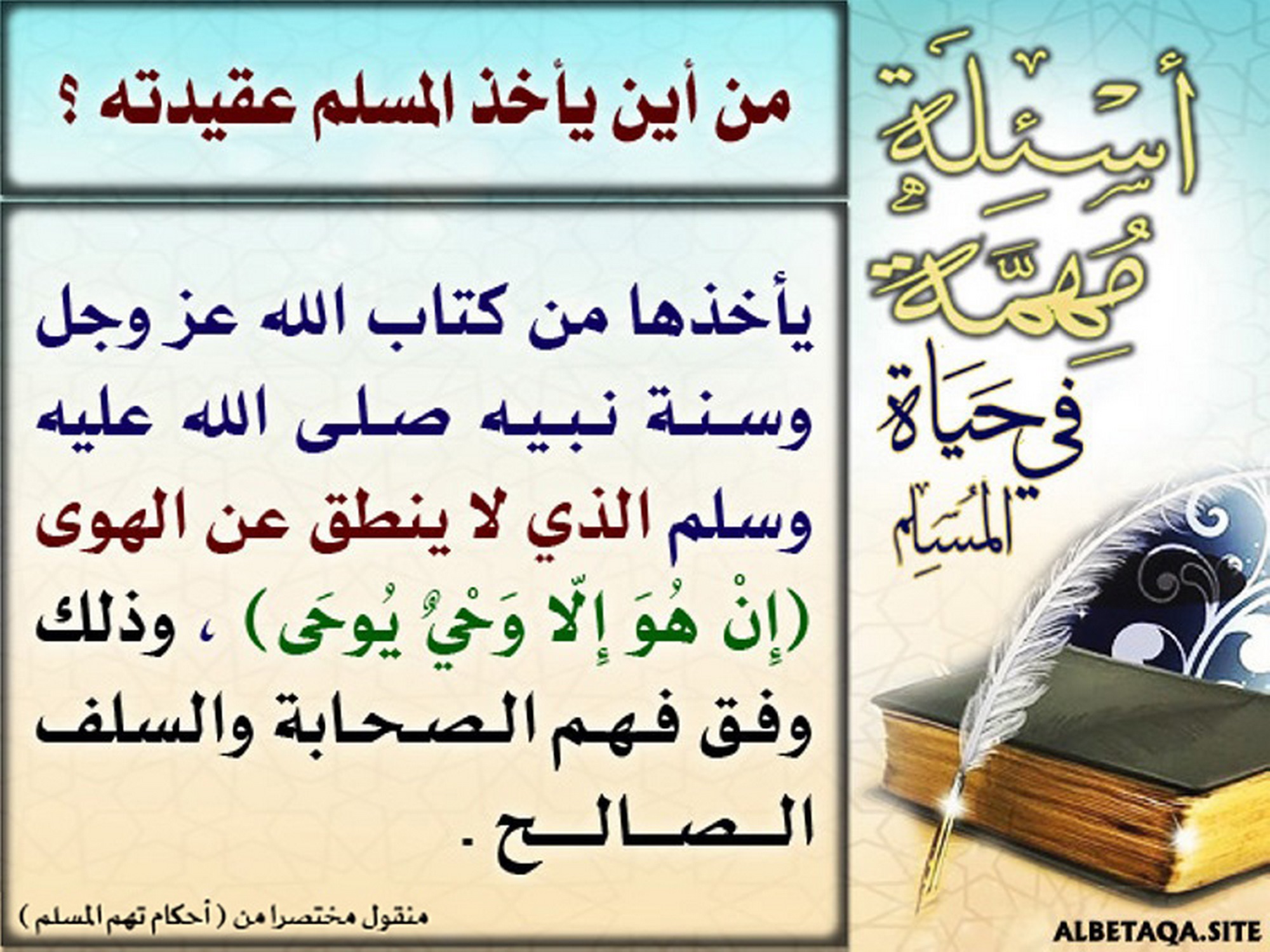 أسئلة مهمة في حياة المسلم – من أين يأخذ المسلم عقيدته؟