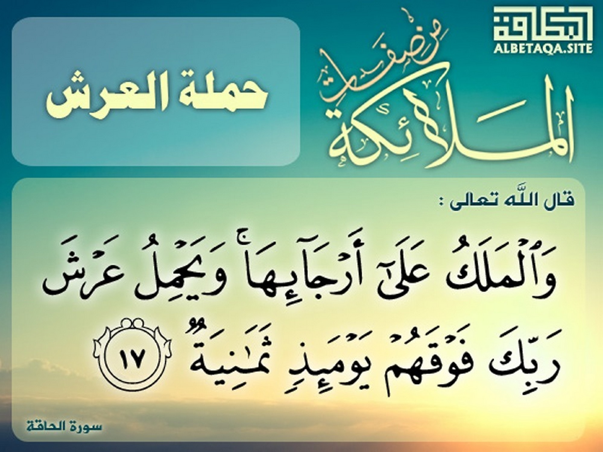 ”والملك على أرجائها ويحمل عرش ربك فوقهم يومئذ ثمانية”. [الحاقة: 17]