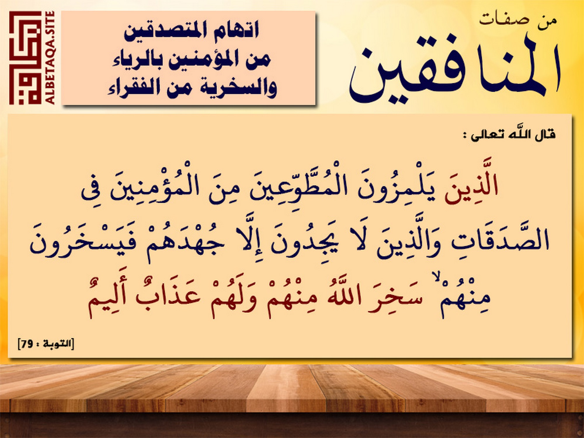 من صفات المنافقين اتهام المتصدقين من المؤمنين بالرياء والسخرية من الفقراء