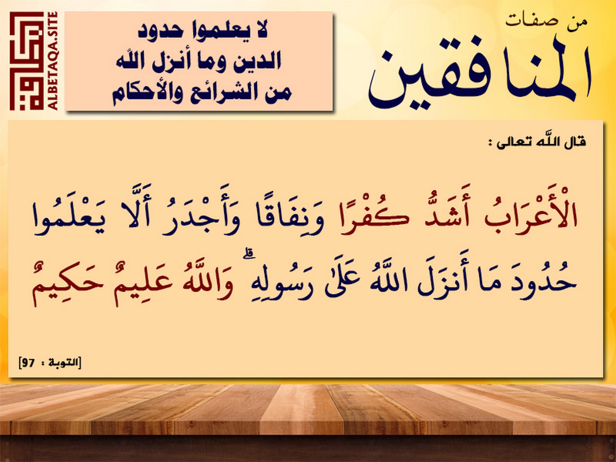 من صفات المنافقين لا يعلموا حدود الدين