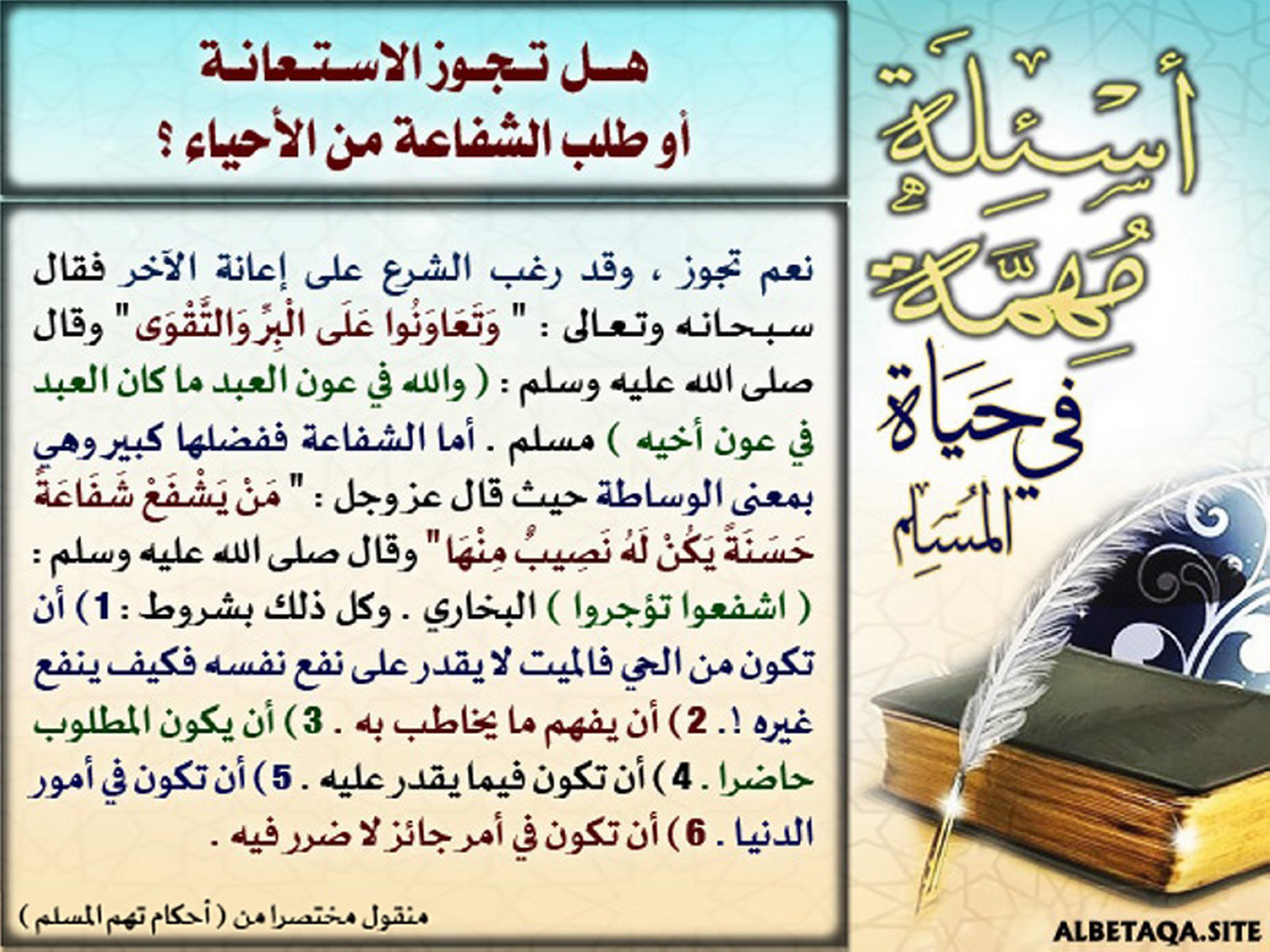 أسئلة مهمة في حياة المسلم – هل تجوز الاستعانة أو طلب الشفاعة من الأحياء؟