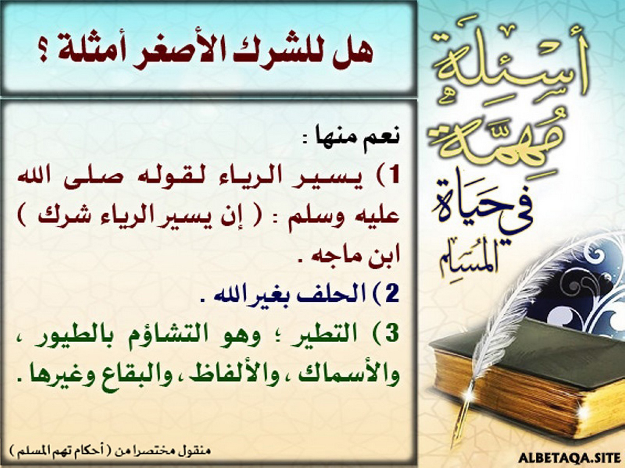 أسئلة مهمة في حياة المسلم – هل للشرك الأصغر أمثلة؟