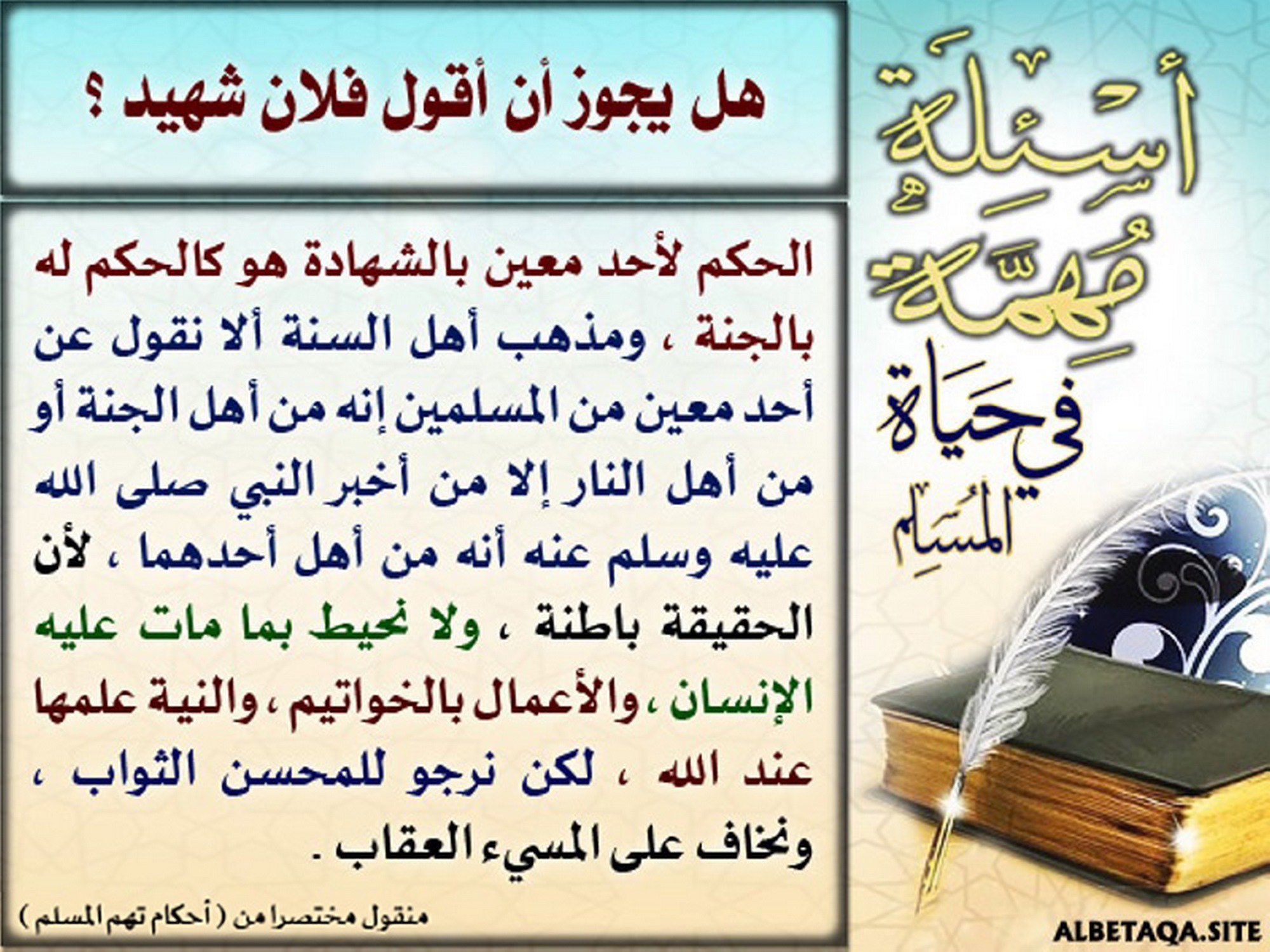 أسئلة مهمة في حياة المسلم - هل يجوز أن أقول فلان شهيد؟