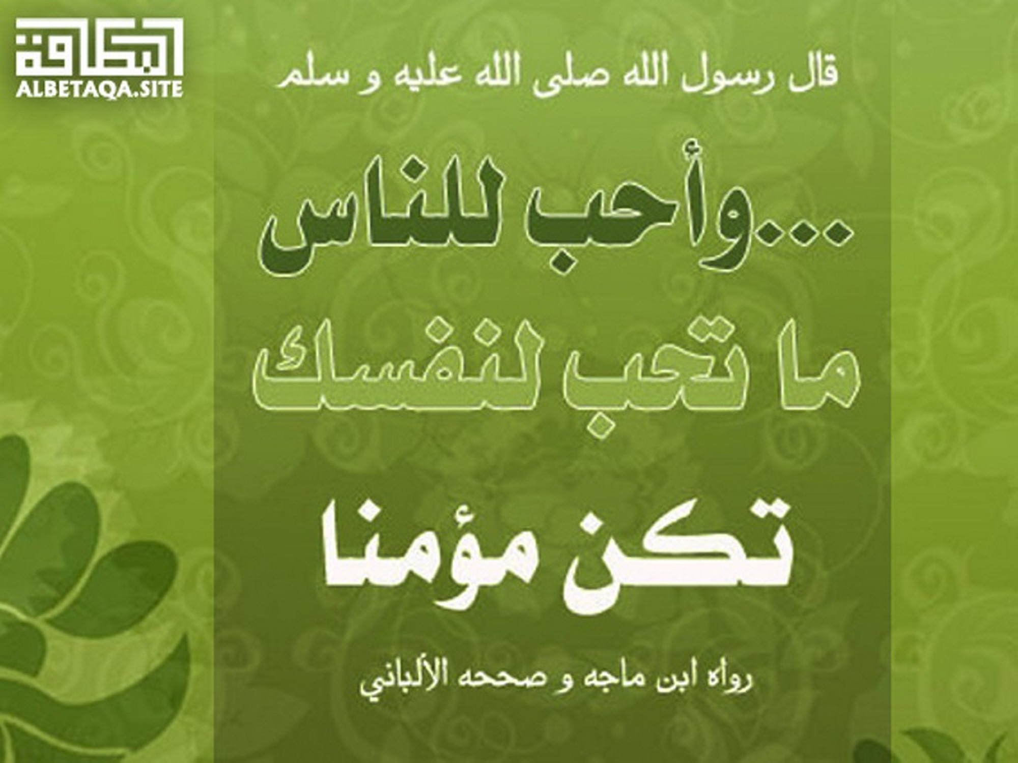 (وأحب للناس ما تحب لنفسك تكن مؤمنا). رواه ابن ماجه وصححه الألباني