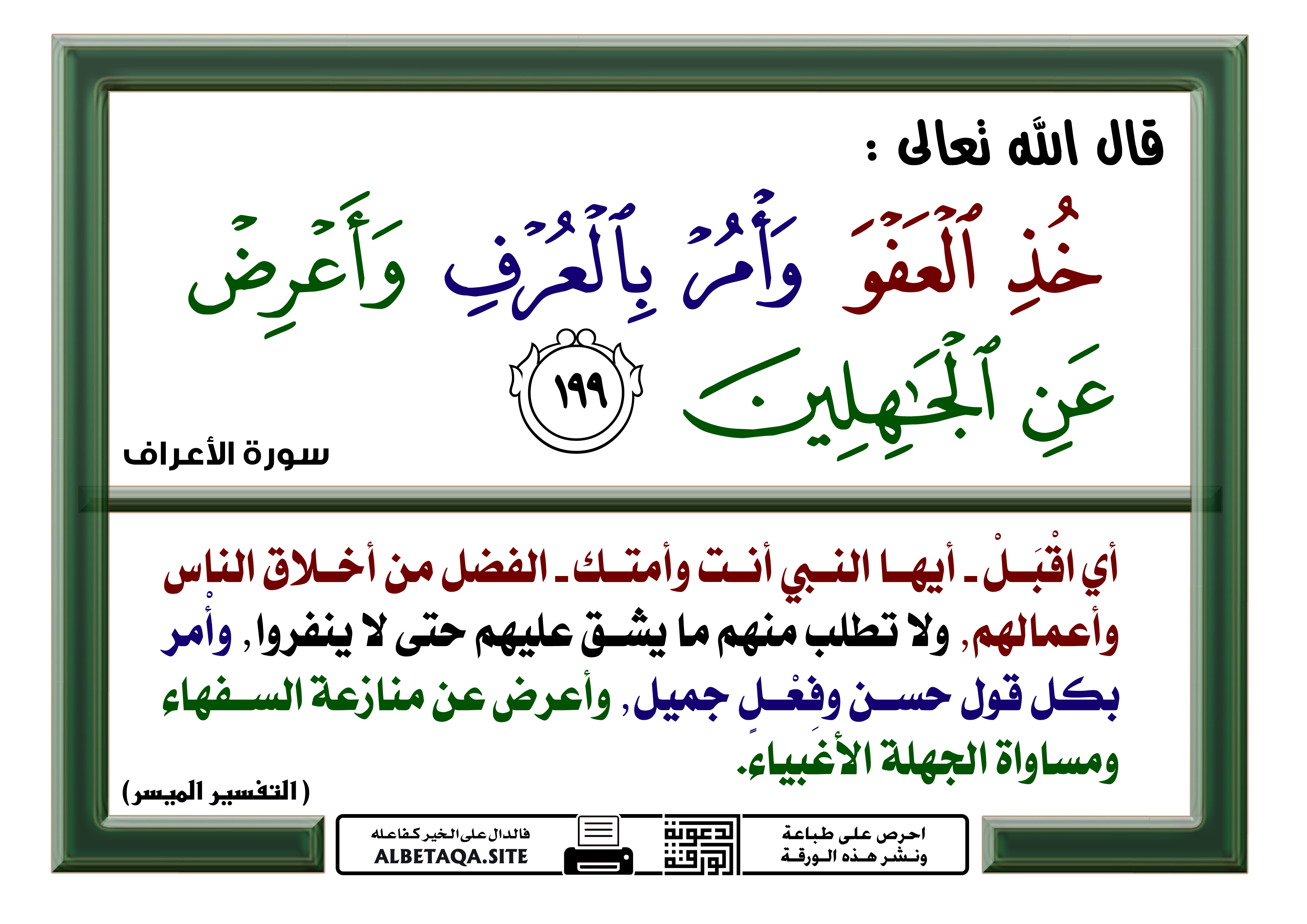 ”خذ العفو وأمر بالعرف وأعرض عن الجاهلين”. [الأعراف : 199]