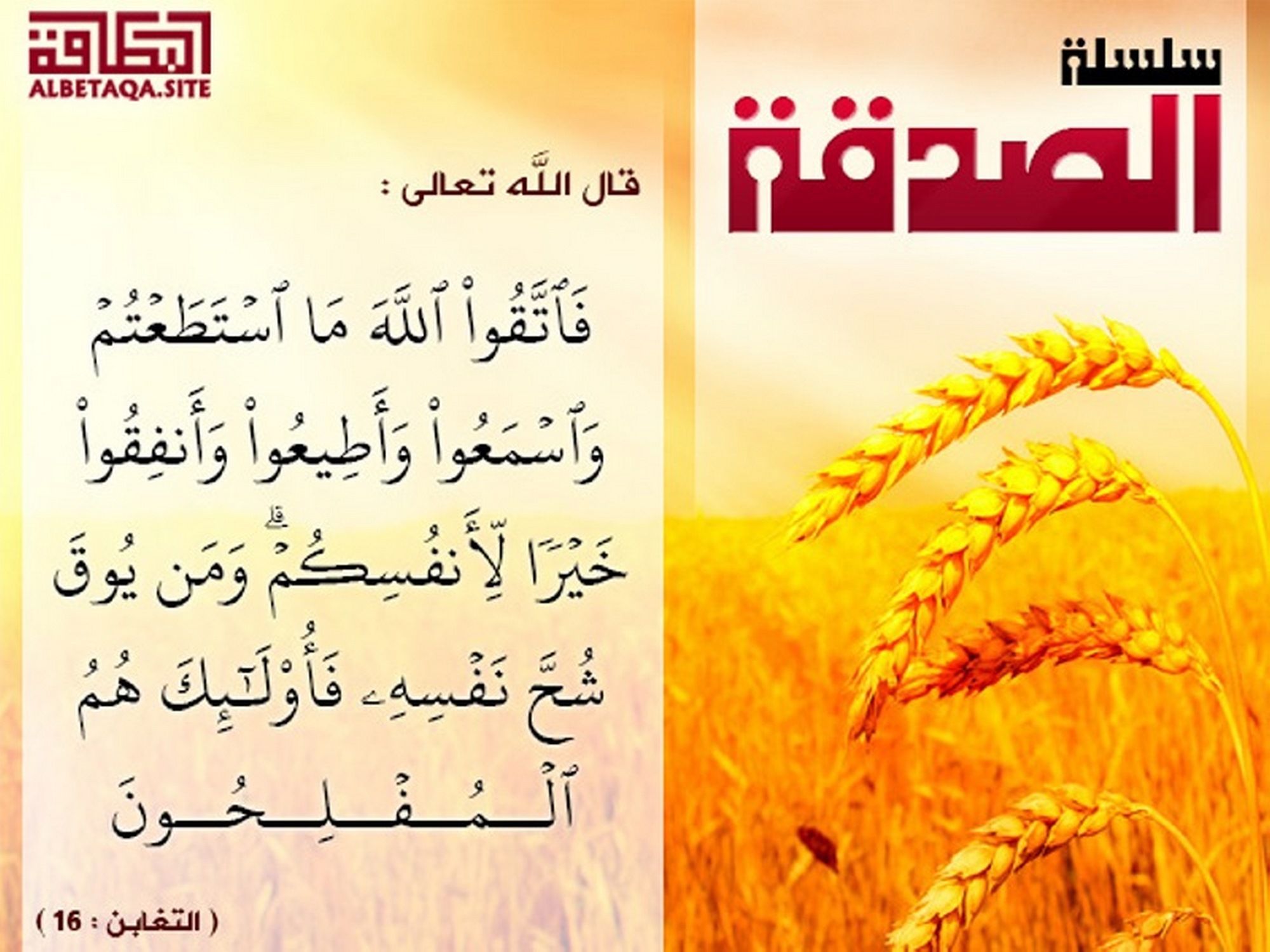 (فاتقوا الله ما استطعتم واسمعوا وأطيعوا وأنفقوا خيرا لأنفسكم ومن يوق شح نفسه فأولئك هم المفلحون). (التغابن: 16)