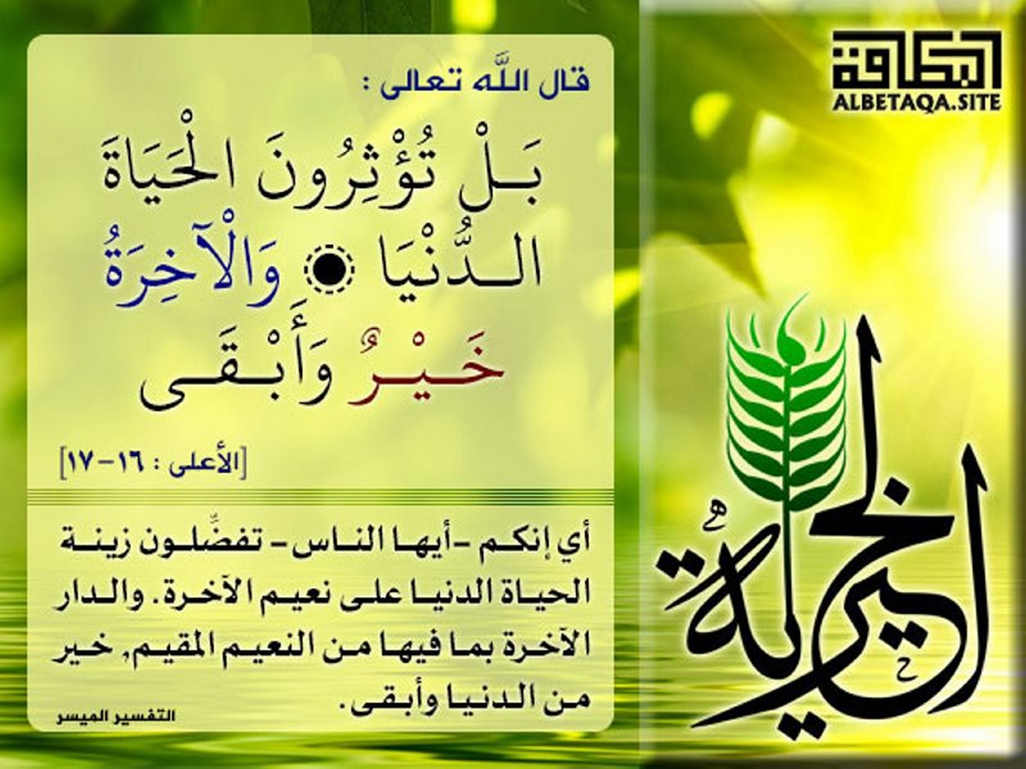 (بل تؤثرون الحياة الدنيا (*) والآخرة خير وأبقى). [الأعلى : 16-17]