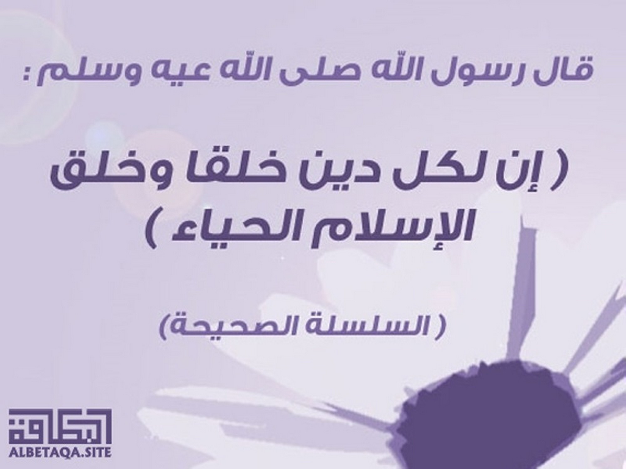 (إن لكل دين خلقا وخلق الإسلام الحياء). السلسلة الصحيحة