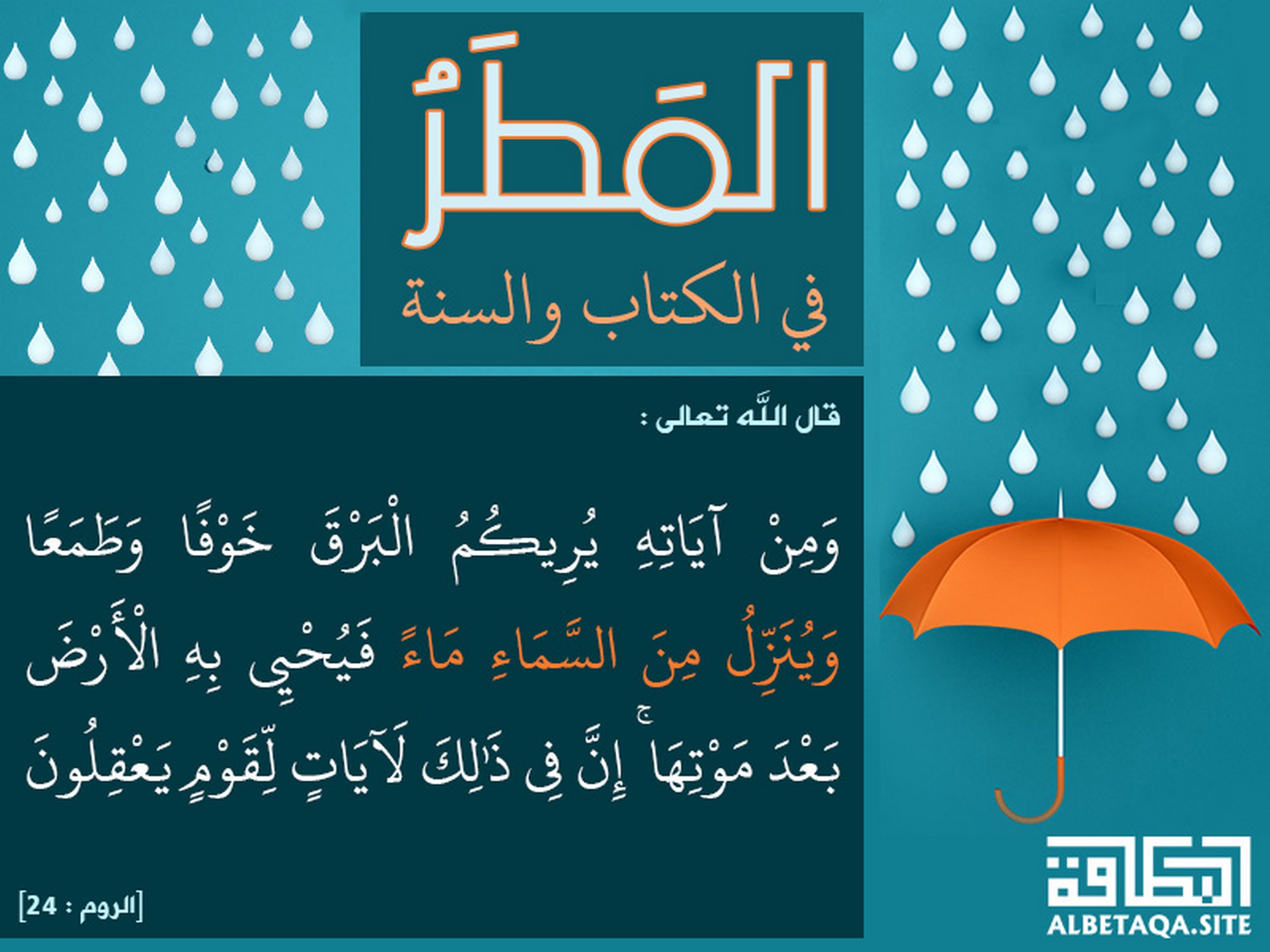 (ومن آياته يريكم البرق خوفا وطمعا وينزل من السماء ماء فيحيي به الأرض بعد موتها إن في ذلك لآيات لقوم يعقلون). [الروم : 24]