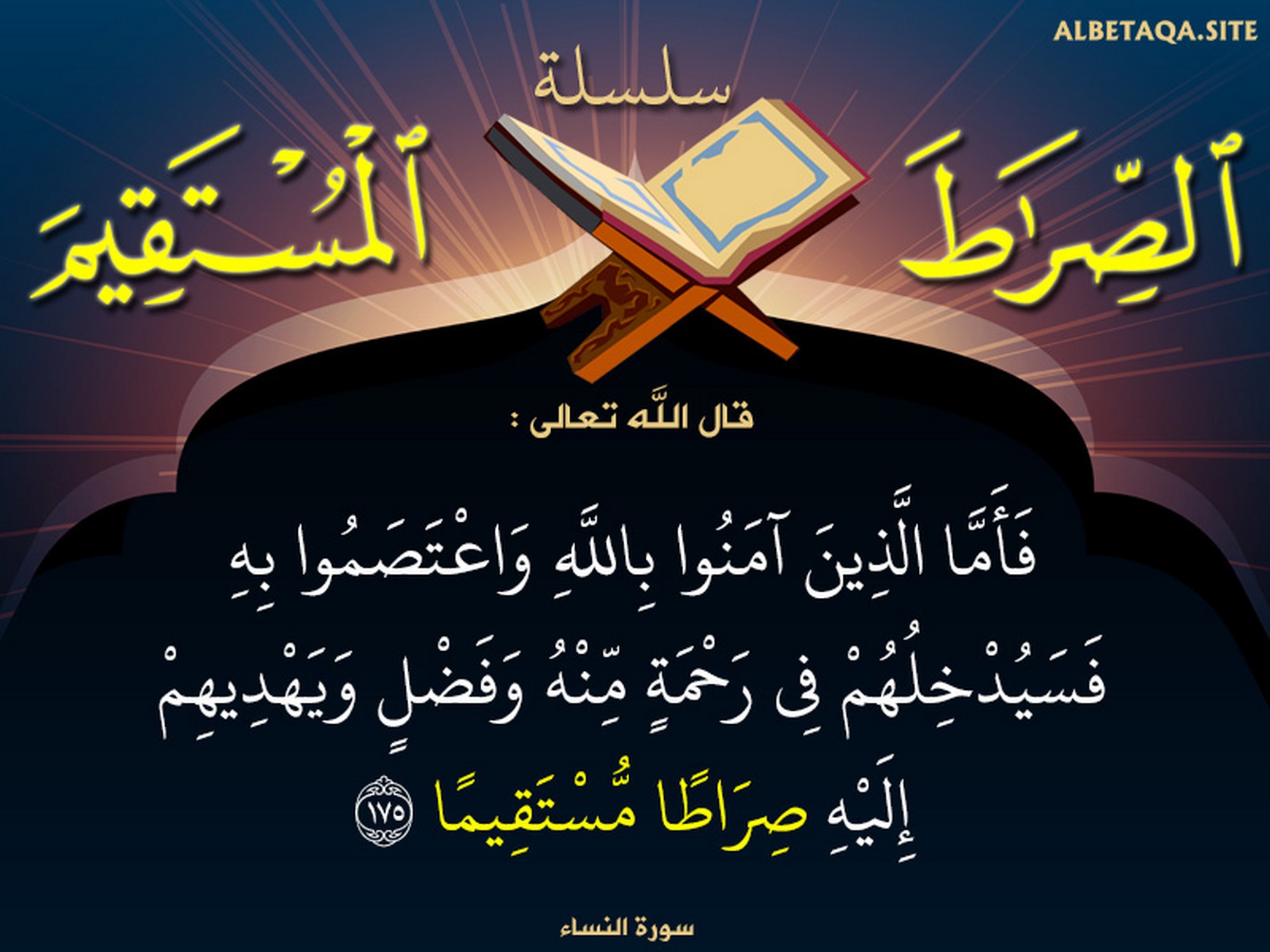(فأما الذين آمنوا بالله واعتصموا به فسيدخلهم في رحمة منه وفضل ويهديهم إليه صراطا مستقيما). (سورة النساء: 175)