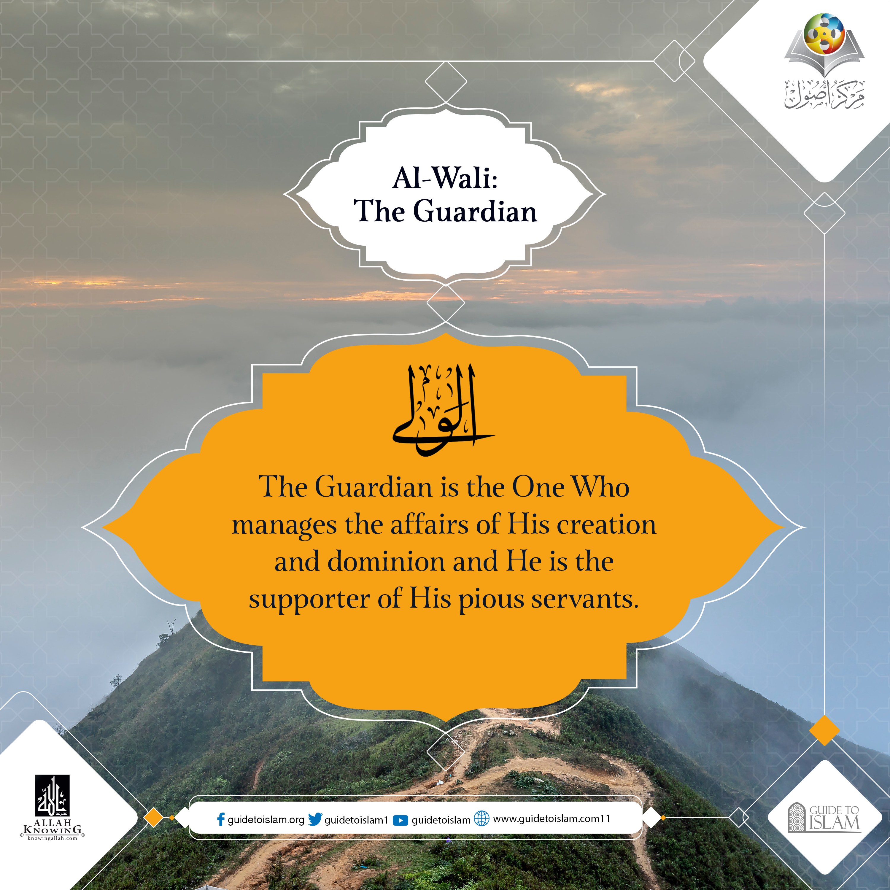 Al-Wali: The Guardian, is the One Who manages the affairs of His creation and dominion and He is the supporter of His pious servants.