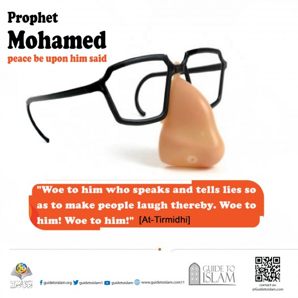 Prophet Muhammad (PBUH) said:" Woe to him who speaks and tells lies so as to make people laugh thereby. Woe to him! Woe to Him!"