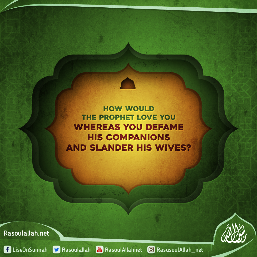 How would the Prophet love you whereas you defame his companions and slander his wives?