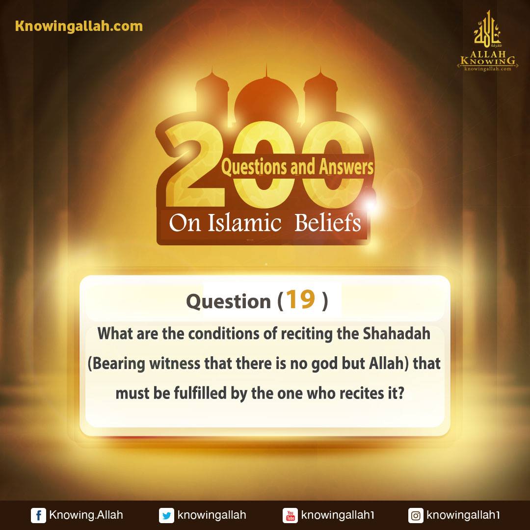 Q 19: What are the conditions of Shahadah (Bearing witness that there is no god but Allah) that must be fulfilled by the one who pronounces it?