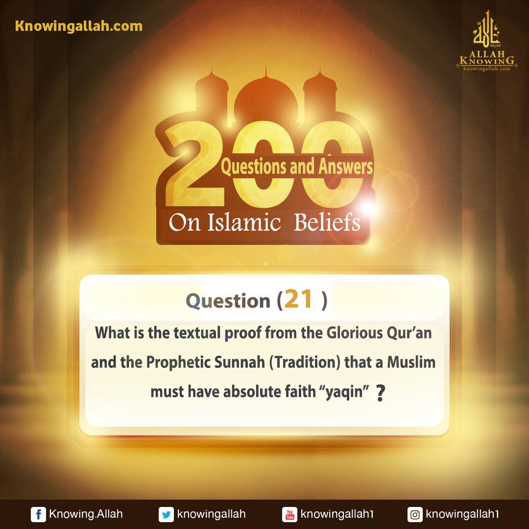 Q 21: What is the textual proof from the Glorious Qur'an and the Prophetic Sunnah (Tradition) that a Muslim must have absolute faith?