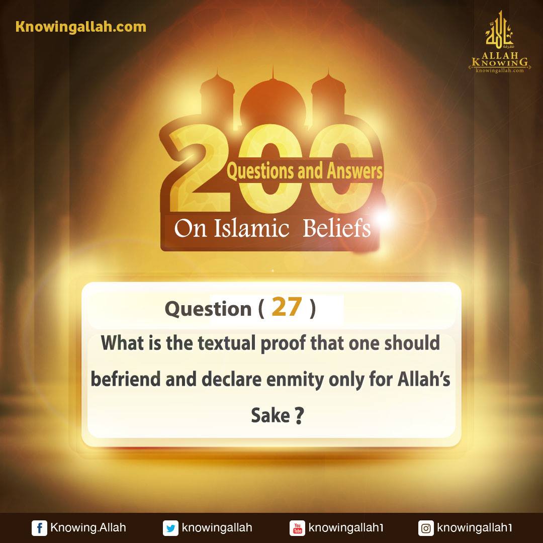 Q 27: What is the textual proof that one should make friends and declare enmity only for Allah's Sake?