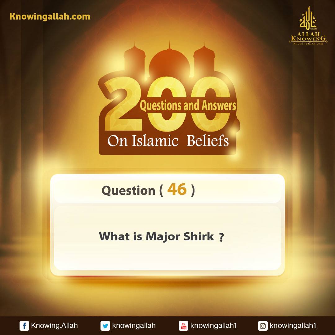 A--- It means associating partners with the Lord of the worlds, like loving someone in the way one loves Allah, fearing someone as if he is Allah, relying on him, invoking him, hoping from him, sinful loyalty to him, obeying him in what displeases Allah, etc. Allah, the Almighty says: