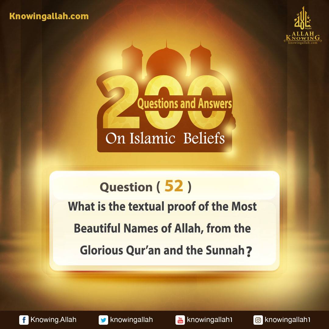 Q 52: What is the textual proof of the Most Beautiful Names of Allah from the Glorious Qur'an and the Prophetic Sunnah?