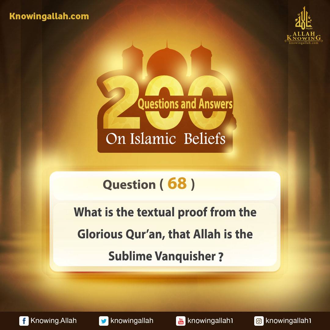 Q 68: What is the textual proof from the Glorious Qur'an that Allah is the Sublime Vanquisher?