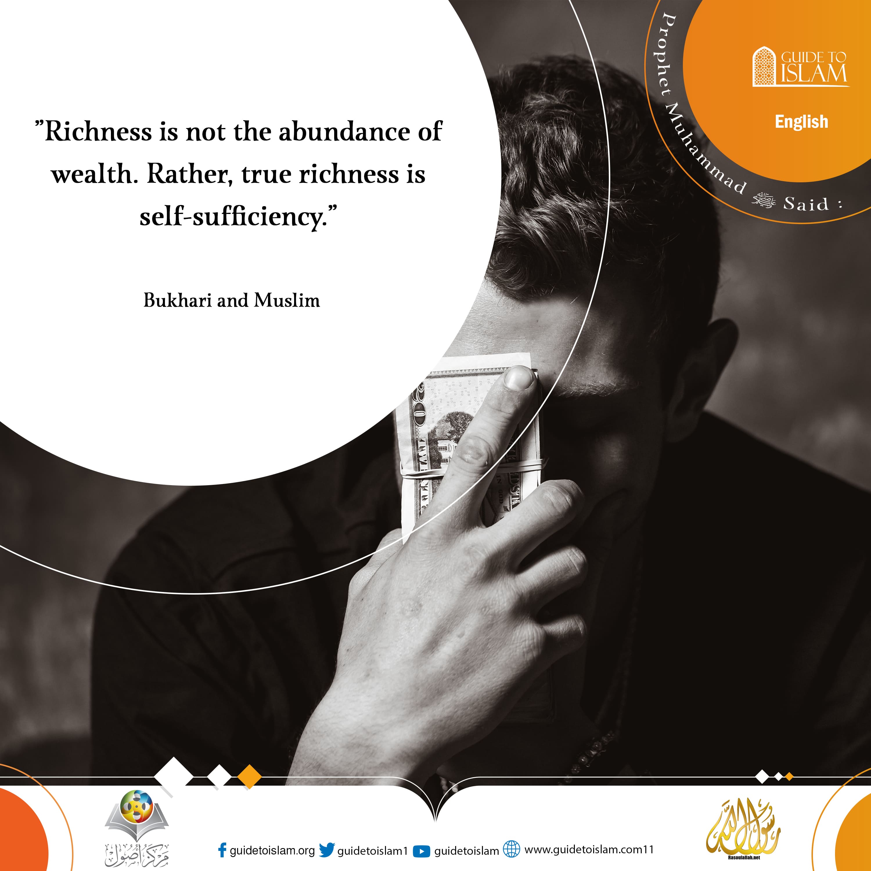 Abu Hurayrah (may Allah be pleased with him) reported that the Prophet (may Allah's peace and blessings be upon him) said: "Richness is not the abundance of wealth. Rather, true richness is self-sufficiency." [Al-Bukhari and Muslim].