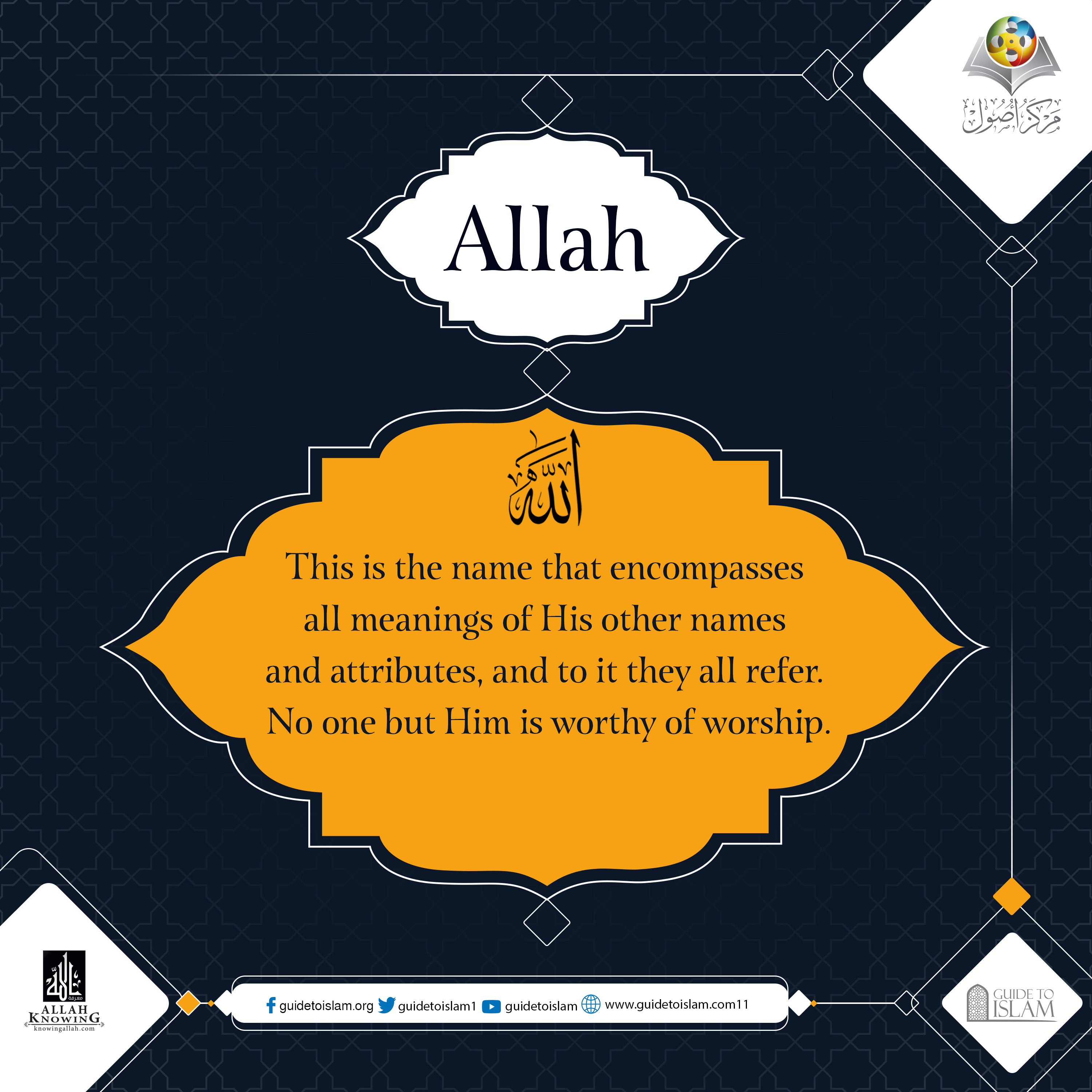 Allah: this is the name that encompasses all meanings of His other names and attributes, and to it they all refer. No one but Him is worthy of worship.