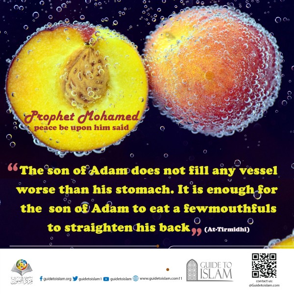 Prophet Muhammad (PBUH) said:" The son of Adam does not fill any vessel worse than his stomach. It is enough for the son of Adam to eat a few mouthfuls to straighten his back"