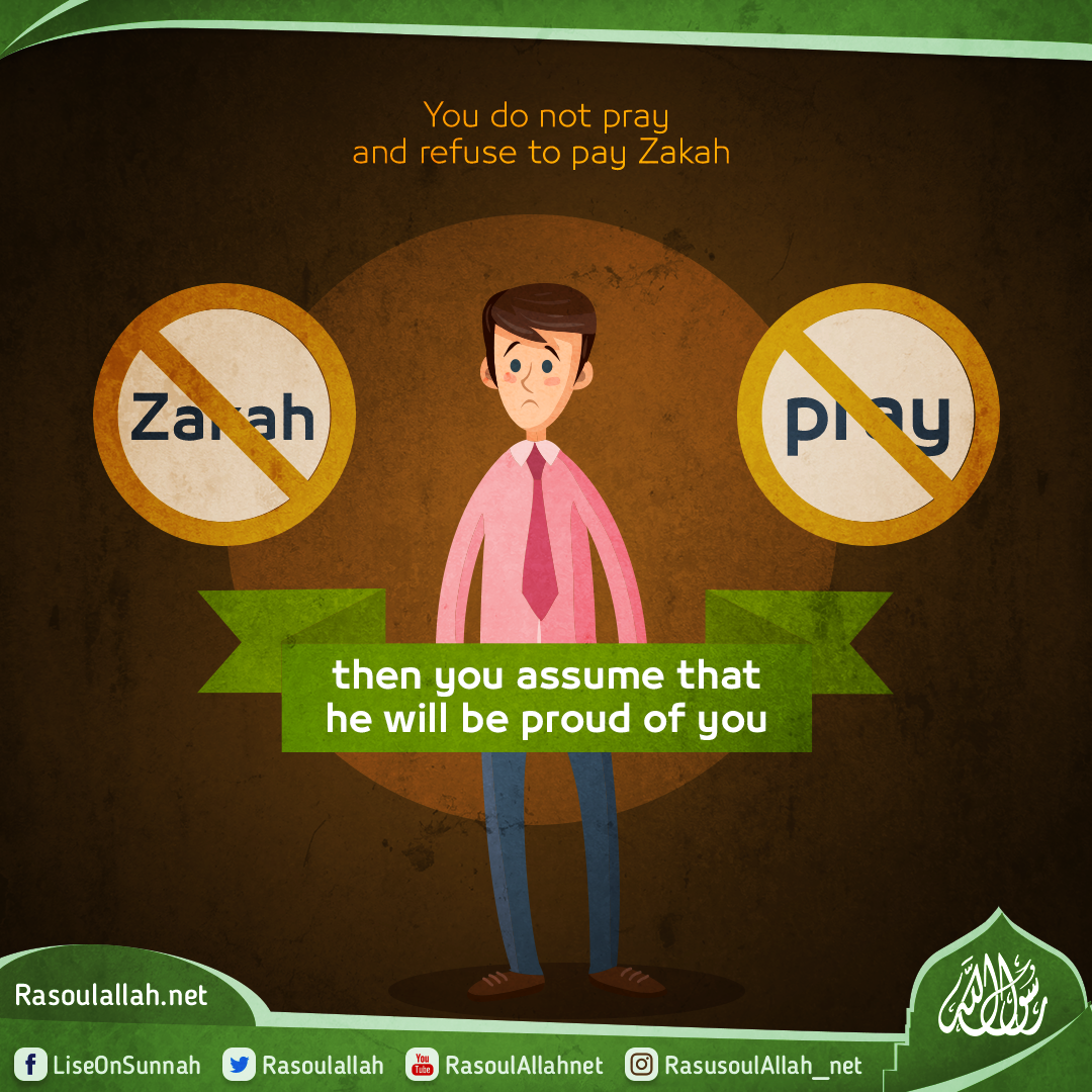 You do not pray and refuse to pay Zakah then you assume that he will be proud of you